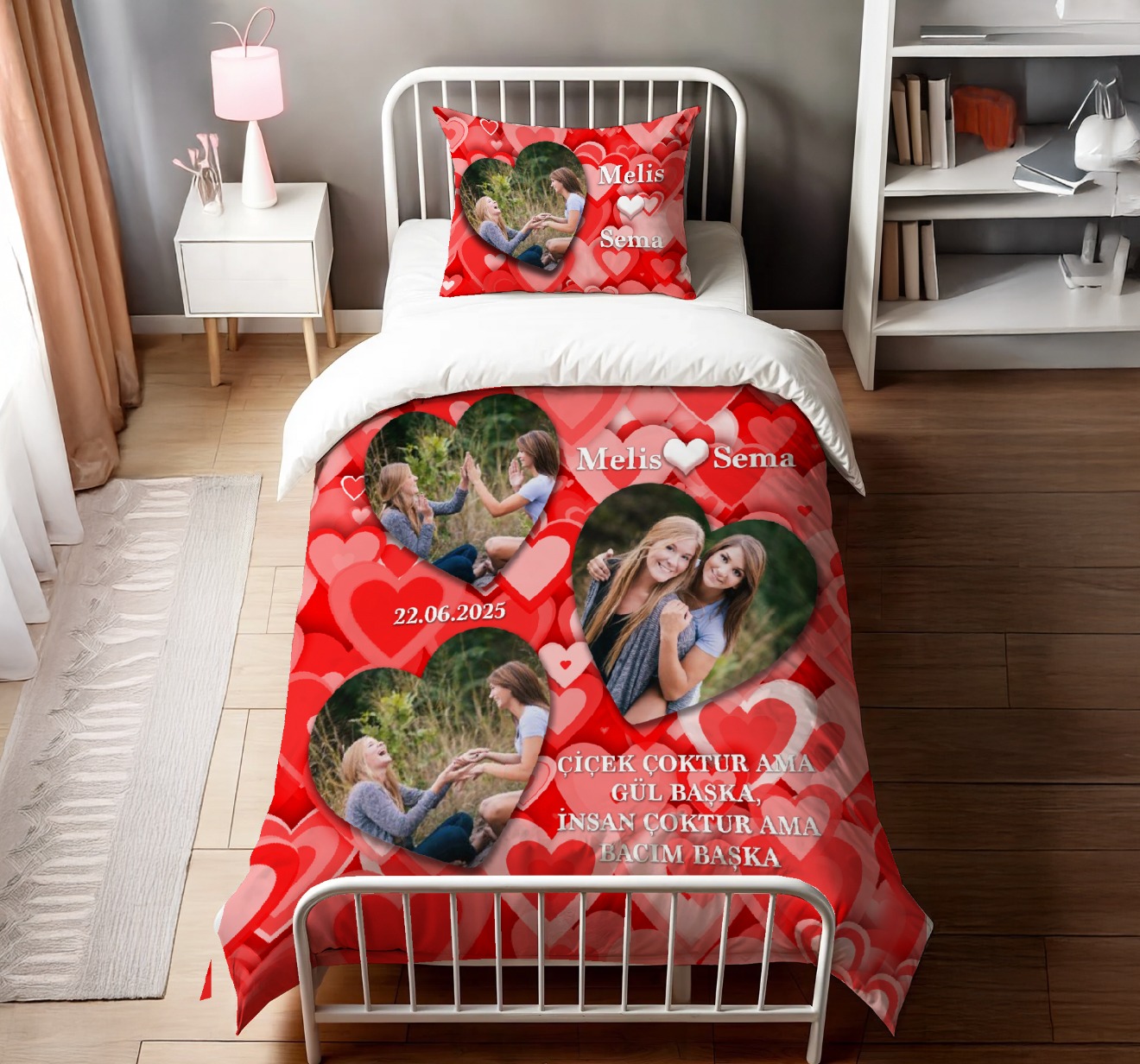 Ürün ölçülerini istediğiniz ebatta, tek kişilik veya çift kişilik hazırlayabiliyoruz.Standart resimli nevresim ölçüleri;